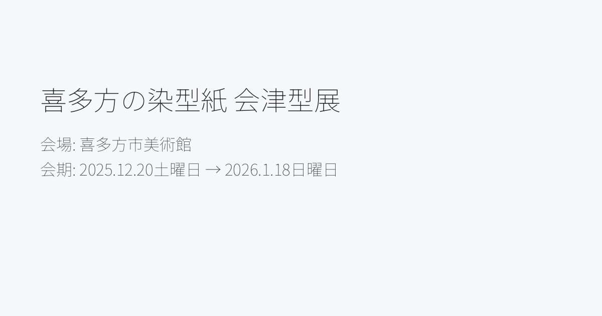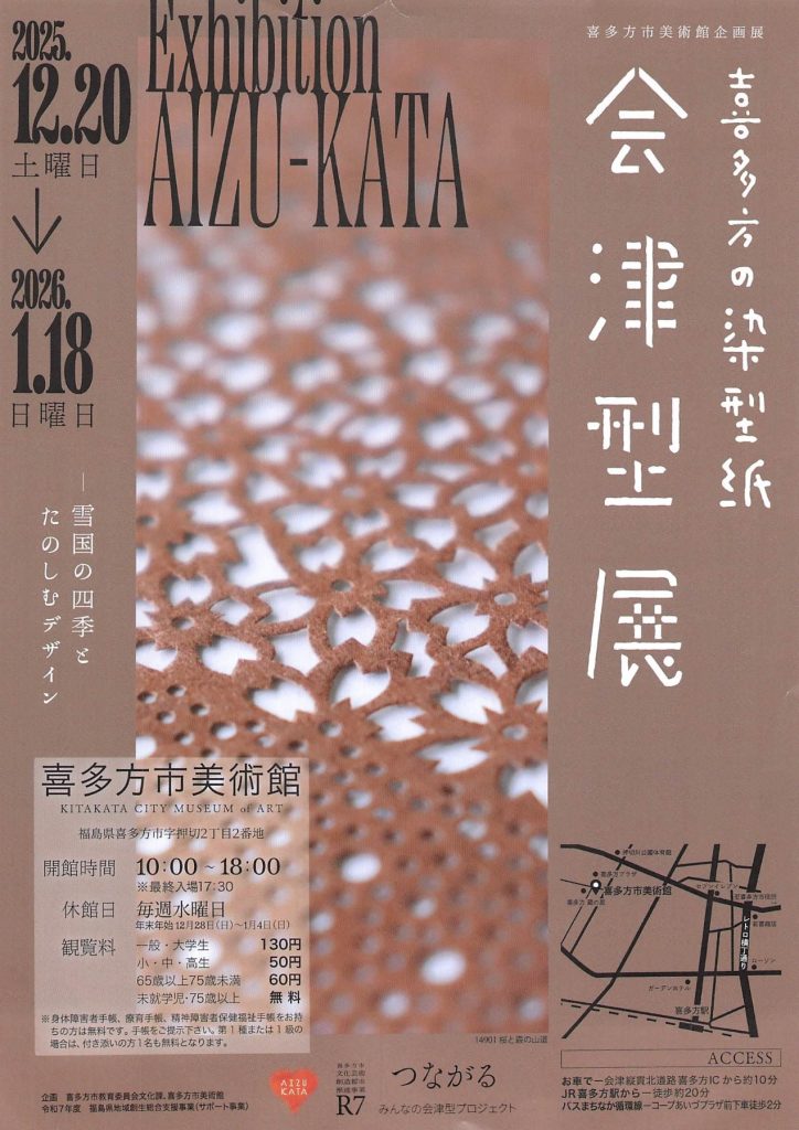 喜多方市美術館で開催される「喜多方の染型紙 会津型展」は、雪国の四季を楽しむデザインをテーマにした企画展です。2025年12月20日から2026年1月18日まで開催され、一般130円などの観覧料が必要です。