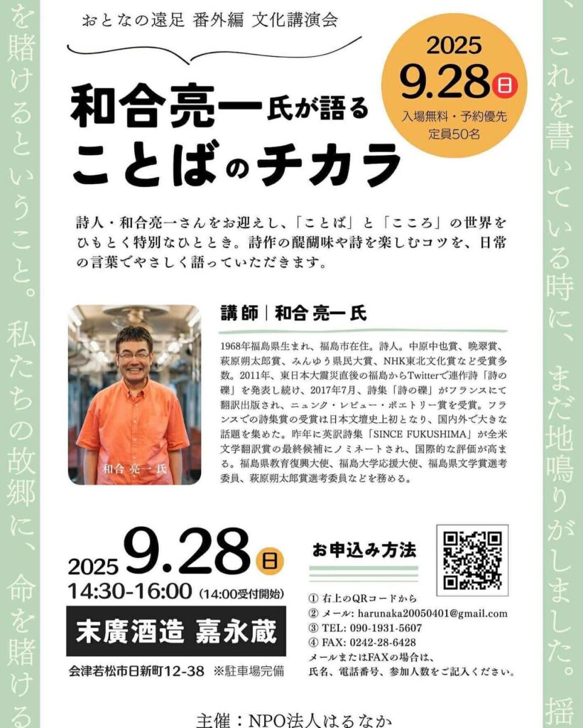 和合亮一氏が語る ことばのチカラ- おとなの遠足 番外編 文化講演会(会津若松市|9/28)