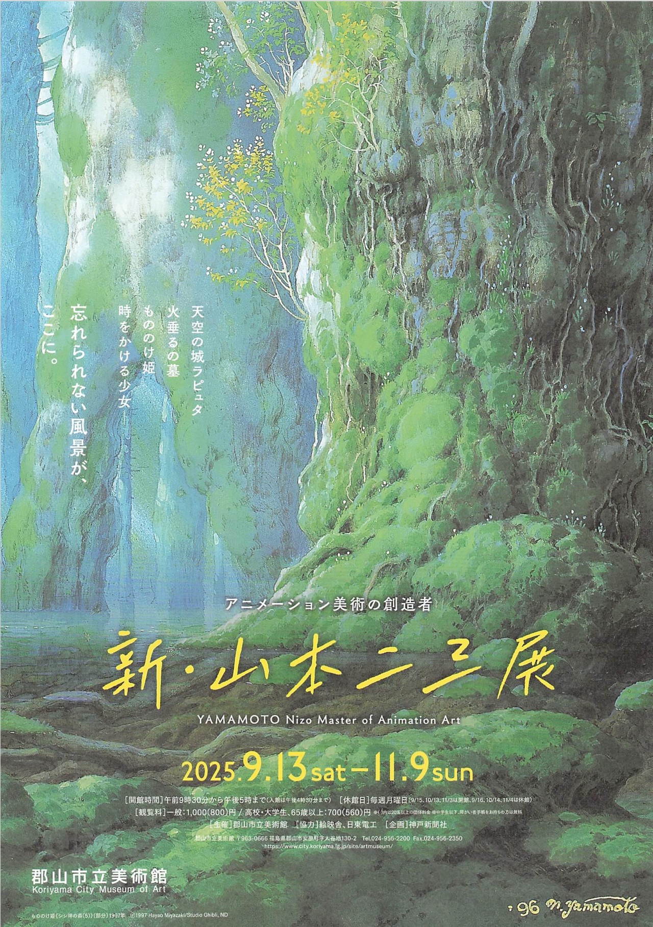 天空の城ラピュタやもののけ姫など、多くの名作で背景美術を手がけた山本二三氏の世界を紹介する展覧会。忘れられない風景の数々が、郡山にやってきます。詩情あふれる筆致で描かれた背景画が、アニメーションの魅力を一層深めま