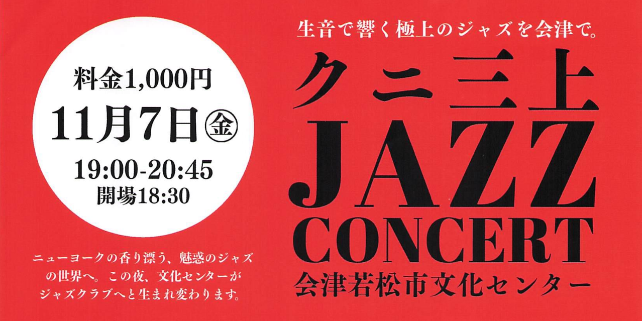 世界の名門ビッグバンドで活躍したジャズピアニスト・クニ三上による特別コンサート。ベーシスト林正男、ドラマー中村勇輝とともに、名曲「A列車で行こう」「ムーン・リバー」などを披露。心地よいグルーヴが響く一夜限りのジャズライブ。