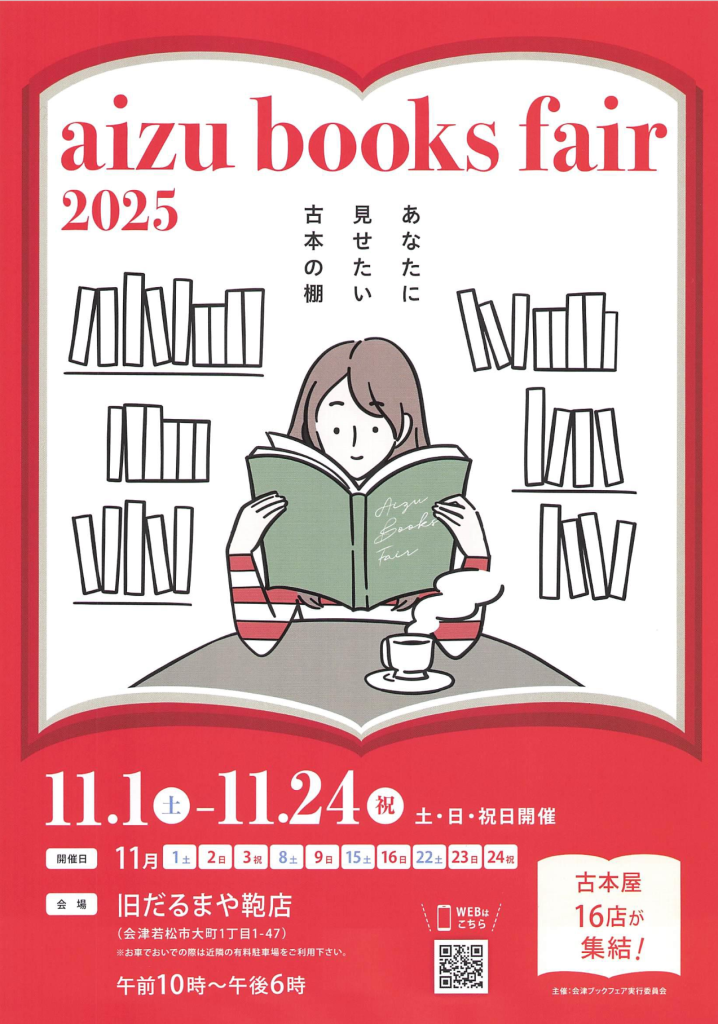 福島県内外の古本屋16店が集結。文学・歴史・アート・趣味など多彩なジャンルの本が並び、店主たちの思いが詰まった棚に出会えるブックイベント。お気に入りの一冊との出会いを楽しめます。