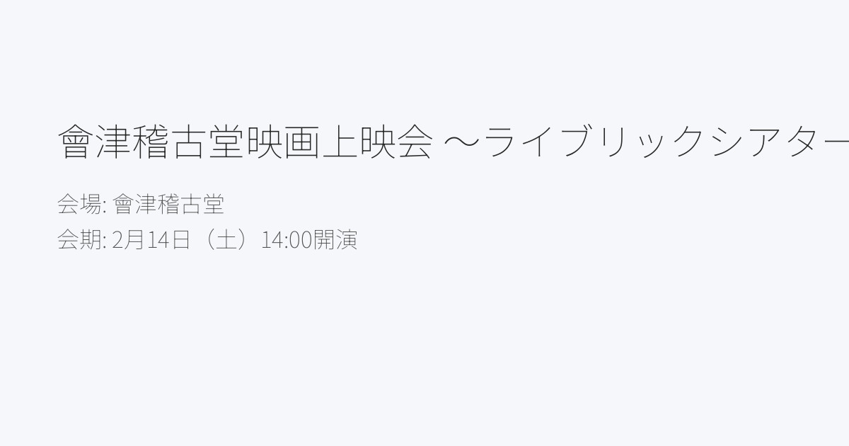 會津稽古堂で図書館所蔵映像資料を上映するイベント。今回はインド映画『スーパー30 アーナンド先生の教室』を上映。先着100名で、開場は30分前。幅広いジャンルを楽しみたい映画好きにおすすめ。飲食や携帯電話の利用は不可。
