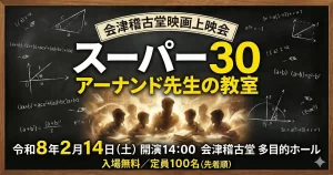 会津稽古堂で「会津稽古堂映画上映会 ~ライブリックシアター~」が開催されます。図書館所蔵の映像資料を大スクリーンで上映。数学講師アーナンドが貧しい子どもたちを教える実話に基づいた物語です。入場無料ですが、定員100名で先着順です。駐車場は混雑する可能性があります。ホール内での飲食は禁止です。