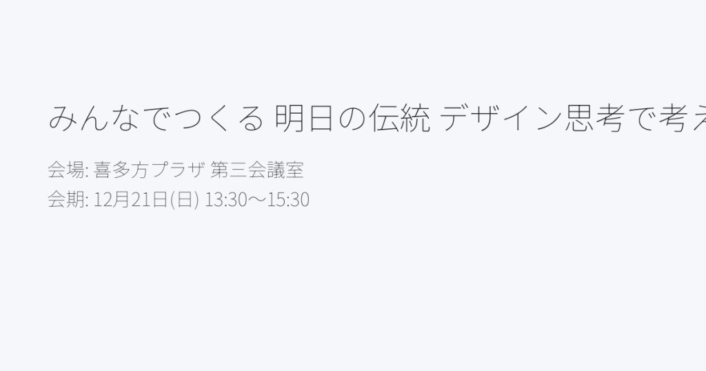 みんなでつくる 明日の伝統 デザイン思考で考える文化のつなぎ方(喜多方市|12/21〜12/21)