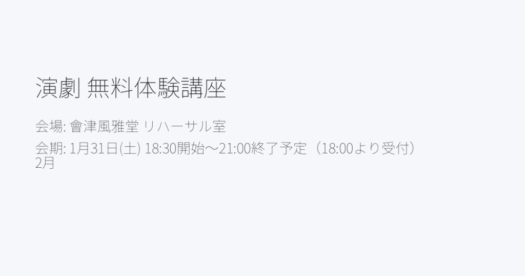 演劇 無料体験講座(会津若松市|1/31〜2/1)