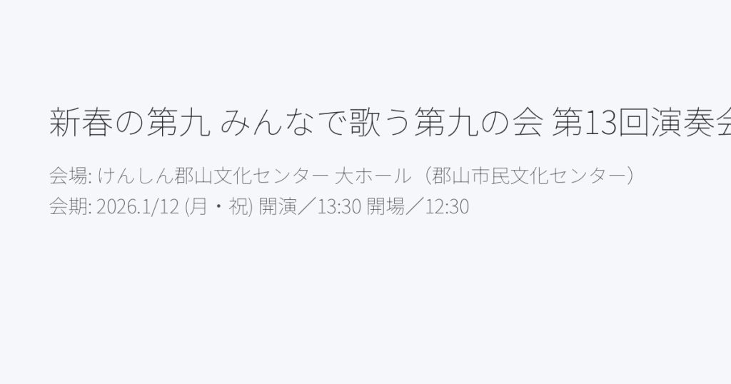 2026年1月12日にけんしん郡山文化センター大ホールで開催される「新春の第九 第13回演奏会」。震災復興と世界平和を願い、市内高校生らの合唱と郡山第九オーケストラ2025による演奏で盛大に開催。 -