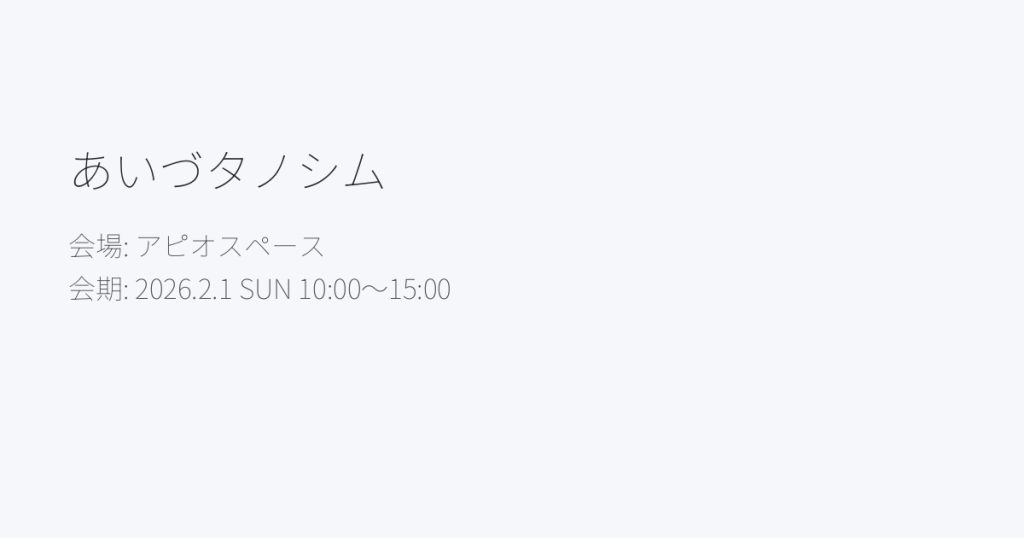 あいづタノシムは、市民活動推進を目的としたイベントで、2026年2月1日にアピオスペースで開催されます。ダンスステージやマルシェ、ワークショップなど多彩な催しが行われ、参加者が新しい会津の魅力を発見できる場です。 -