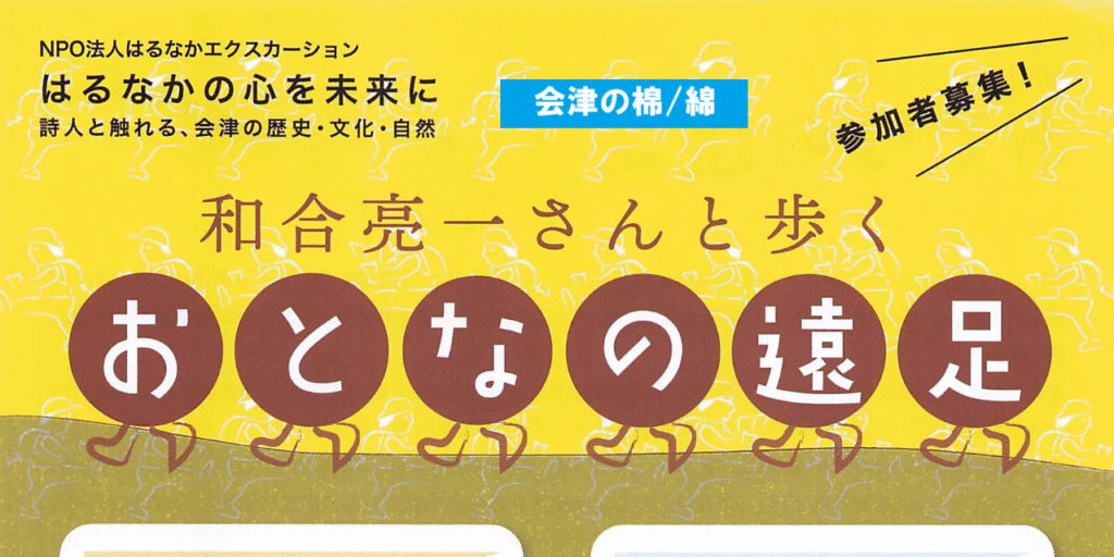 江戸時代に栄えた会津の綿産業をテーマに、詩人・和合亮一さんと歩く体験イベント。明治期に隆盛した綿工場を訪ね、現存する「山田木綿織元」での見学や体験を通じ、会津の歴史と文化に触れます。 -