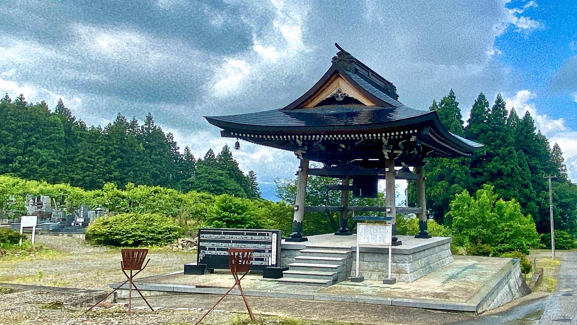 照谷寺は、標高540mの御山(おやま)の中腹(ちゅうふく)にあります。撞いた鐘の音は麓に届いたでしょうか。