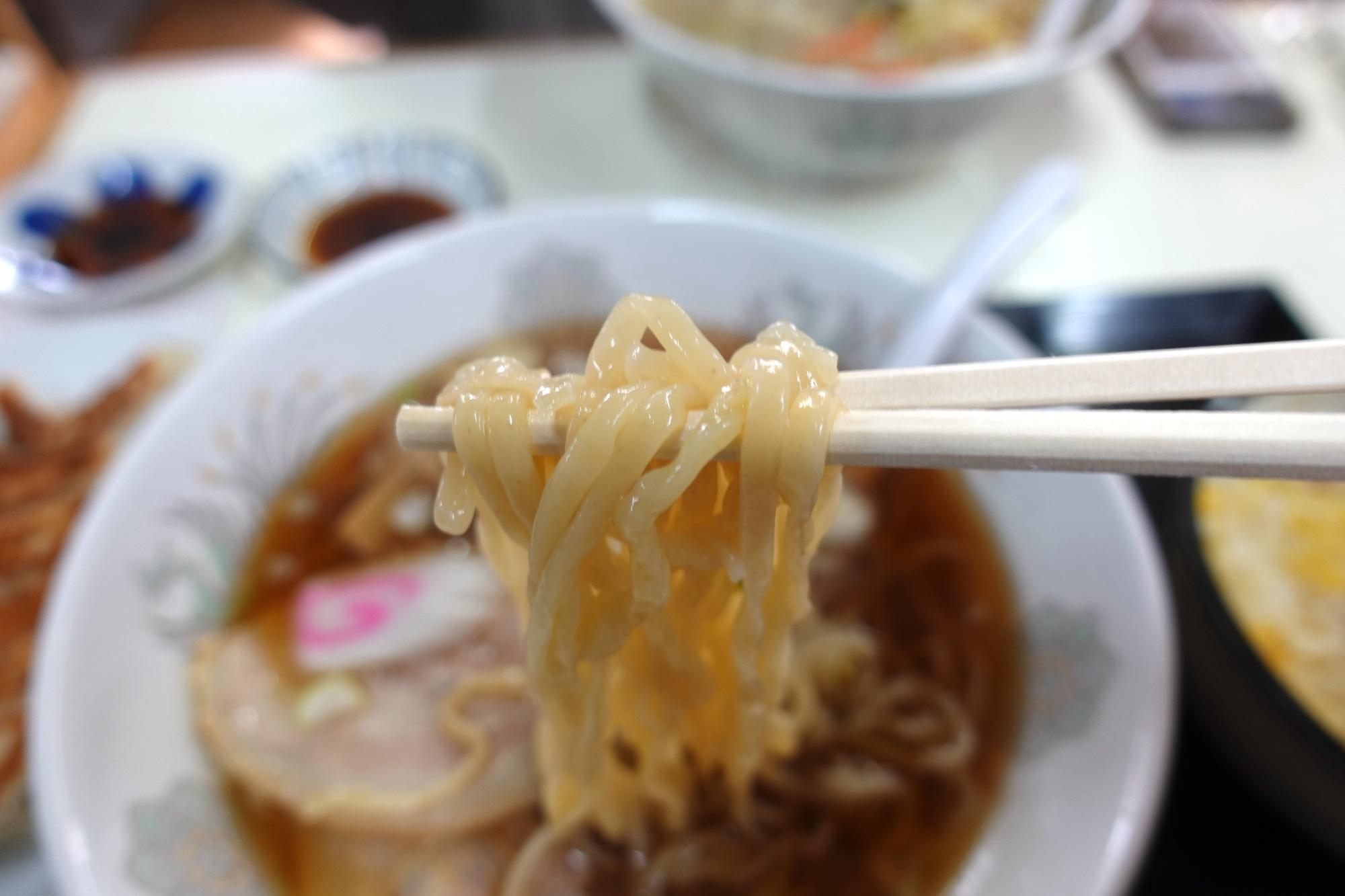 麺は、自分には軟らかめで、連れにはちょうどいい硬さ(食感)。コシや味がやや独特(他の店とは異なる)と思う(やや弱腰な意見)。