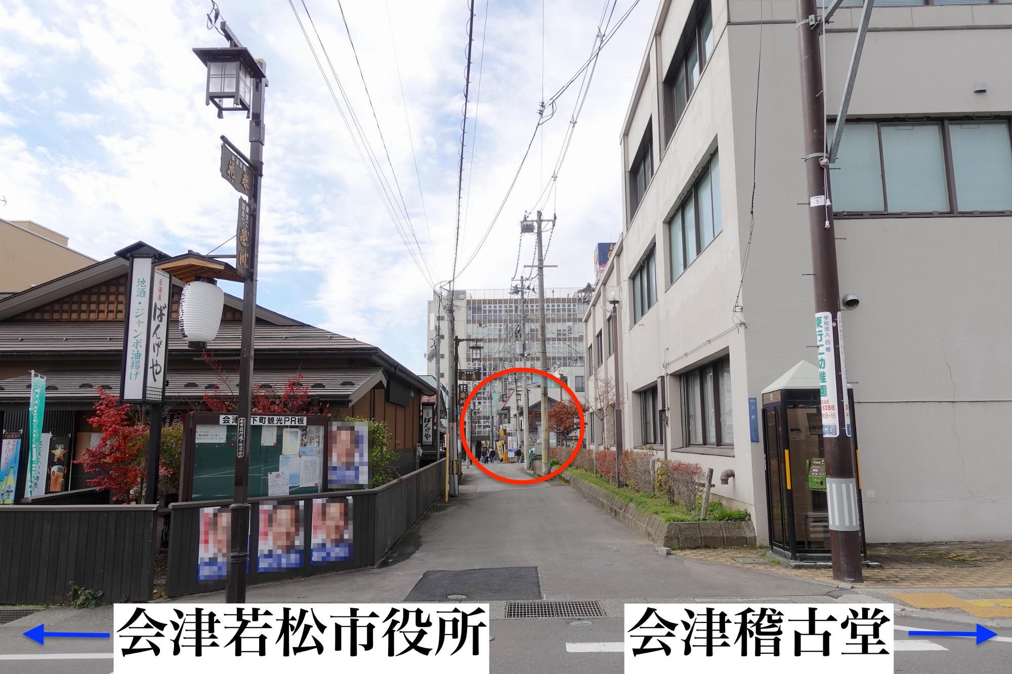 花小路通り【会津若松市】飲食店の紹介 会津稽古堂の手前 市役所前通りの西 神明通りに通じる小路