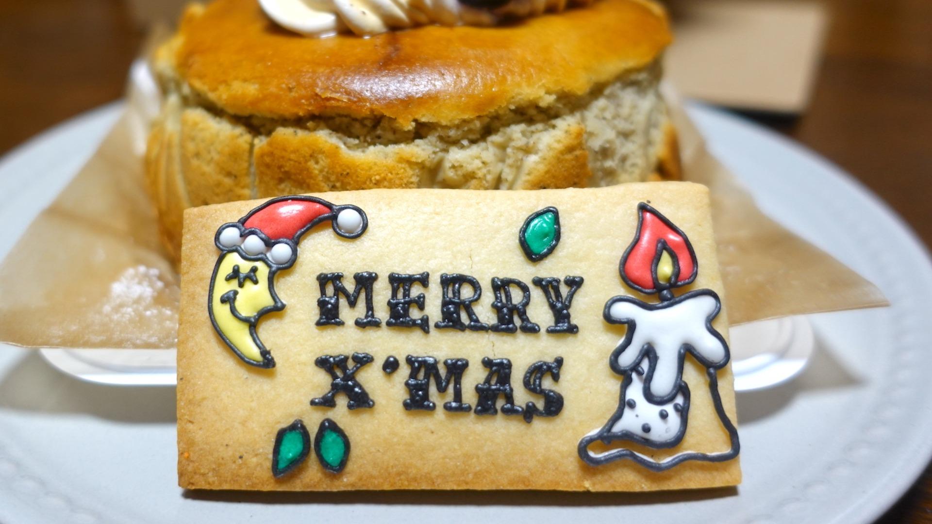 紅茶とりんごのベイクドチーズケーキは、選べるクリスマスプレートアイシングクッキー1枚つき。ちなみに、様々なデザインのアイシングクッキーが用意されていました。(インスタで見ただけです)12月24日の日中は仕事で、受け取りが遅い時間になってしまい、訪店時は「その他のアイシングクッキー」は売れ切れてました。