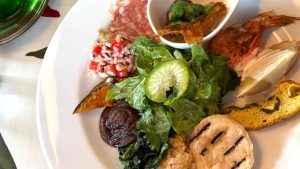 前菜の盛り合わせ。見ただけで気分が盛り上がる。グリルやフリット(揚げ物)等、それぞれの味わいが楽しめます。