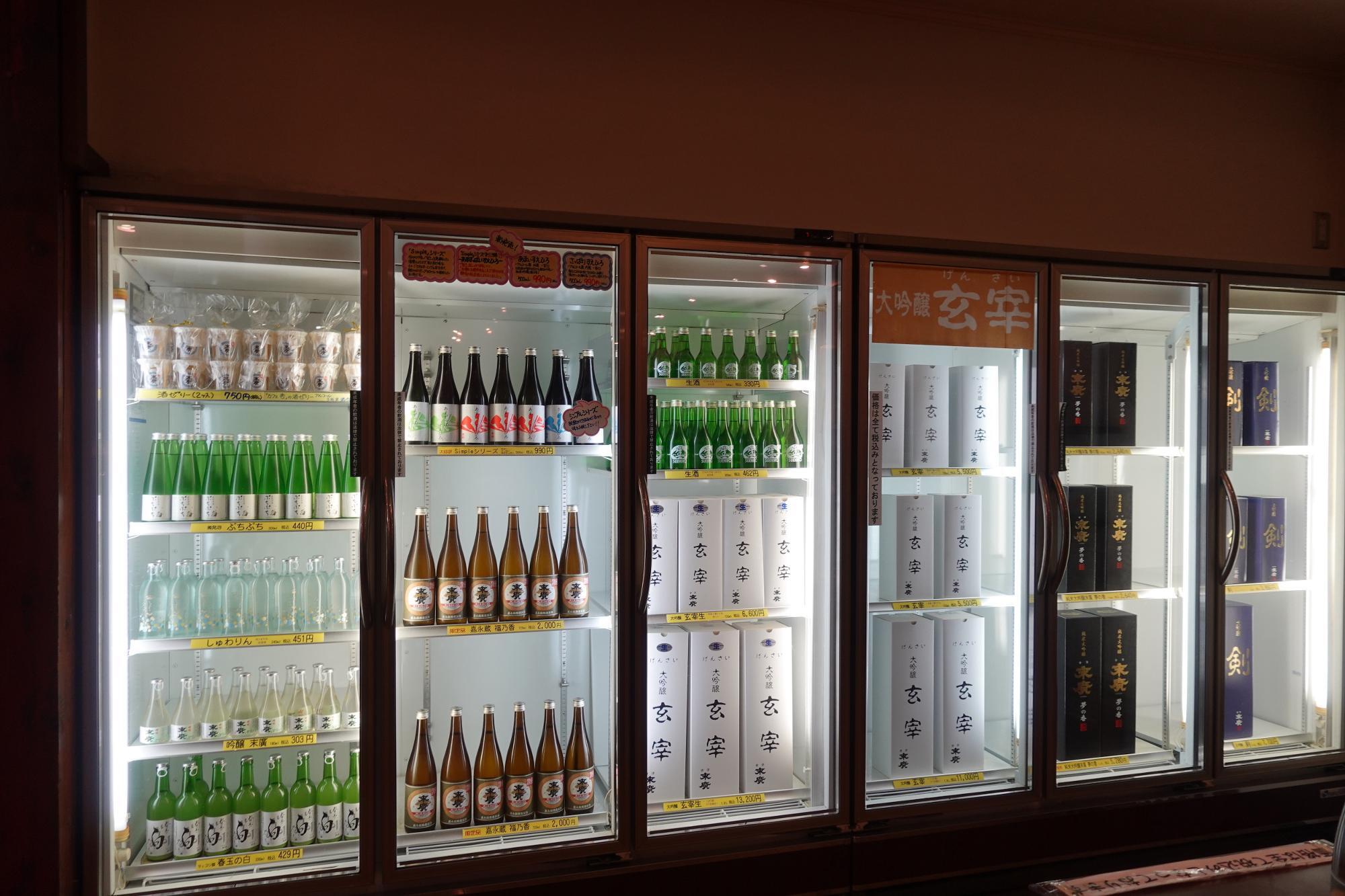 奥には冷蔵庫があり、冷やして美味しい日本酒が並びます。お勧めは「玄宰」でしょうか。日本酒好適米「山田錦」を35%まで精米するという拘りの日本酒。2020酒造年度全国新酒鑑評会 金賞受賞の名酒。ただし、日本酒は農産物と同じで、毎年同じ味ではありません。金賞受賞時以上の味わいがある(かもしれません)。それ以上に好みの問題もあります。