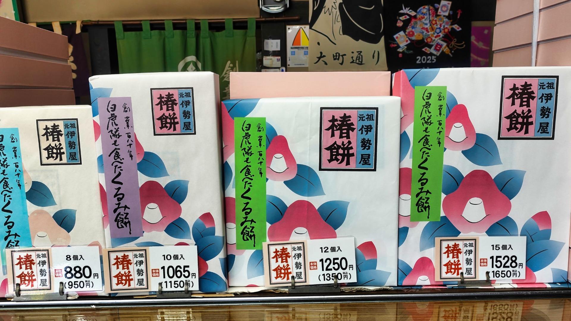 椿餅はゆべしに似た食感でくるみが入っています。「元祖 伊勢屋 椿餅」言わずと知れた伊勢屋の看板商品。日持ちはしません。「椿餅」には真空パックもあります。いつも生 椿餅を購入しているので買って食べたことはないのですが、真空パックだと日持ちがします。