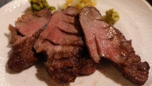 牛タンが各種続きましたが、ここで、厚切り牛ハラミ。本来なら「この後に牛タンと一緒に、麦飯・とろろ・スープ」なのですが、ご希望があれば先に「麦飯・とろろ・スープ」を出してもらえるという事でしたので、自分とつれあいは出してもらいました。