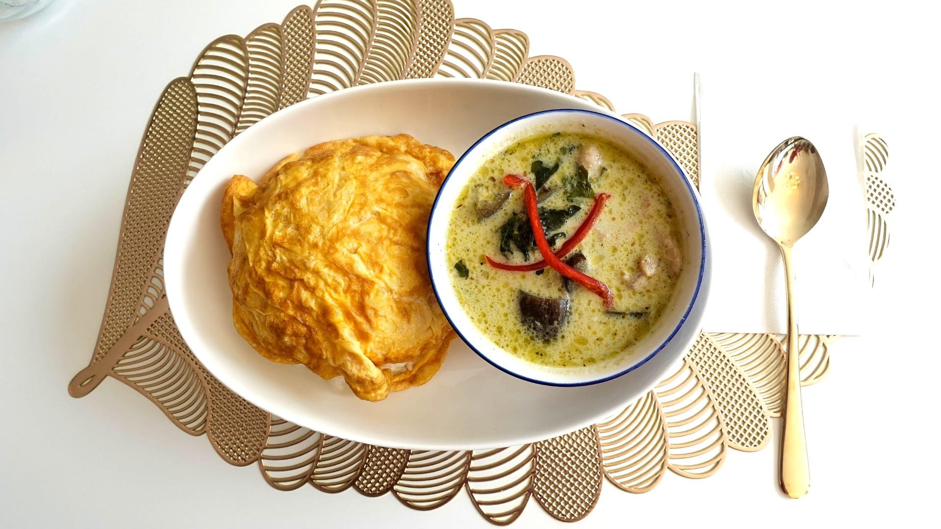 チキングリーンカレーとタイ風オムレツ
