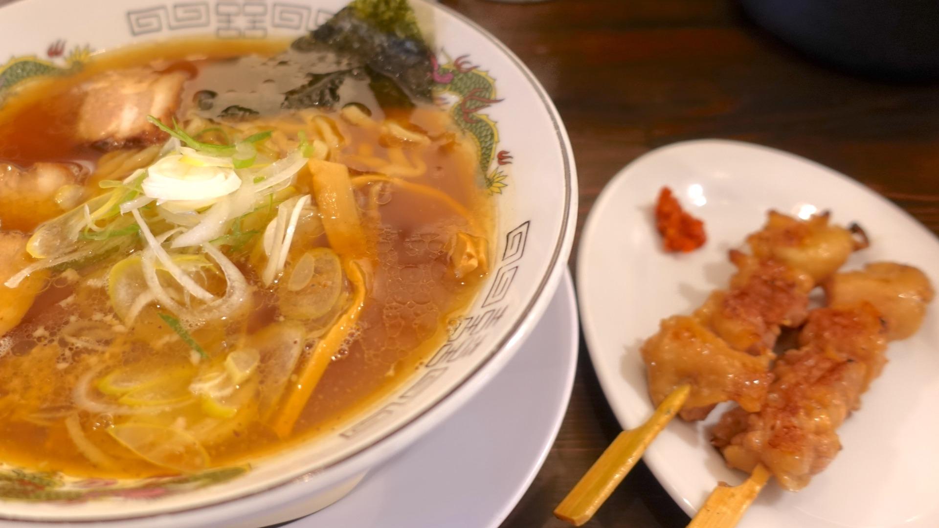 ラーメンの話から「焼き鳥」になってしまいますが、メニューに「焼き鳥」もあるのです。個人的には高評価で、10時から「焼き鳥」が食べられる店はありません(知らないだけかもしれませんが)。・・・「うえんで 本店」にも「焼き鳥」メニューがあります。朝ラーでは提供されず、ランチからです。ちなみに「焼き鳥」と呼んでますが「うえんで 本店」は豚のカシラです。昔からあるメニューで「うえんで 本店」の名物です。