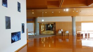 スロープを上った先は多目的ホール。写真は、多目的ホールから玄関ホール方向のもの。