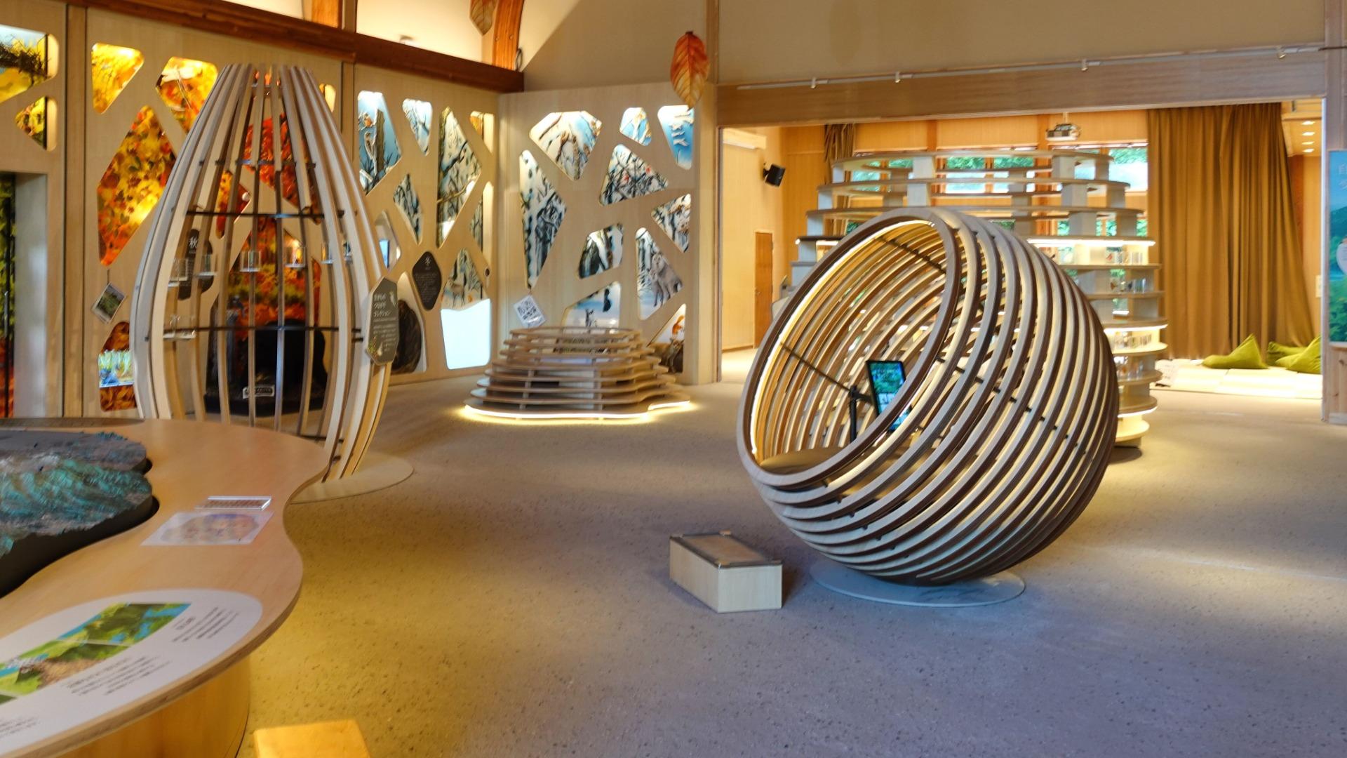館内では、柔らかなオブジェを用いて、自然や動植物、歴史文化について展示解説されています。