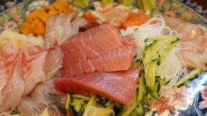 馬糞ウニ。すごい名前ですよね、調べると、みんな気を使ってかカタカナ表記にしてました。『バフンウニ』。「いいものだから、そのまま食べても美味しいですよ」と言われ、そのまま食べたら、ウニの濃厚な味がストレートに舌に届きました。どの刺身もしっかりした味で、満足度は高い。