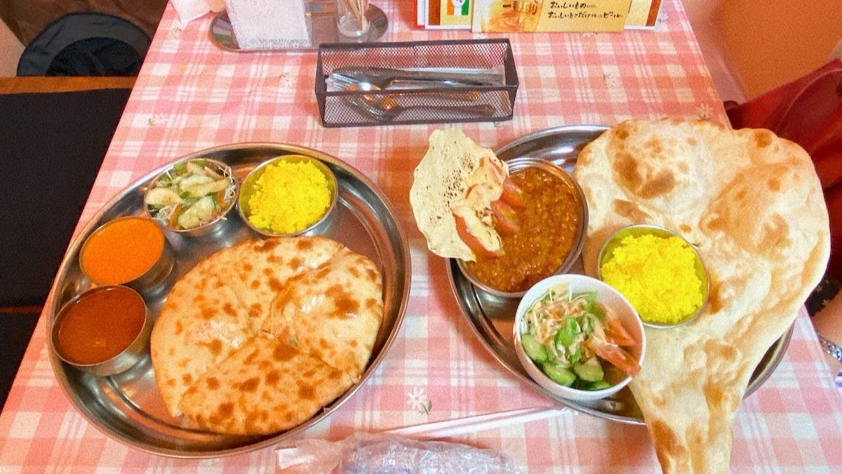 カーンナワブ【会津若松市】トマトカレーセット 驚きのビッグサイズのナンできた インド料理 ランチ