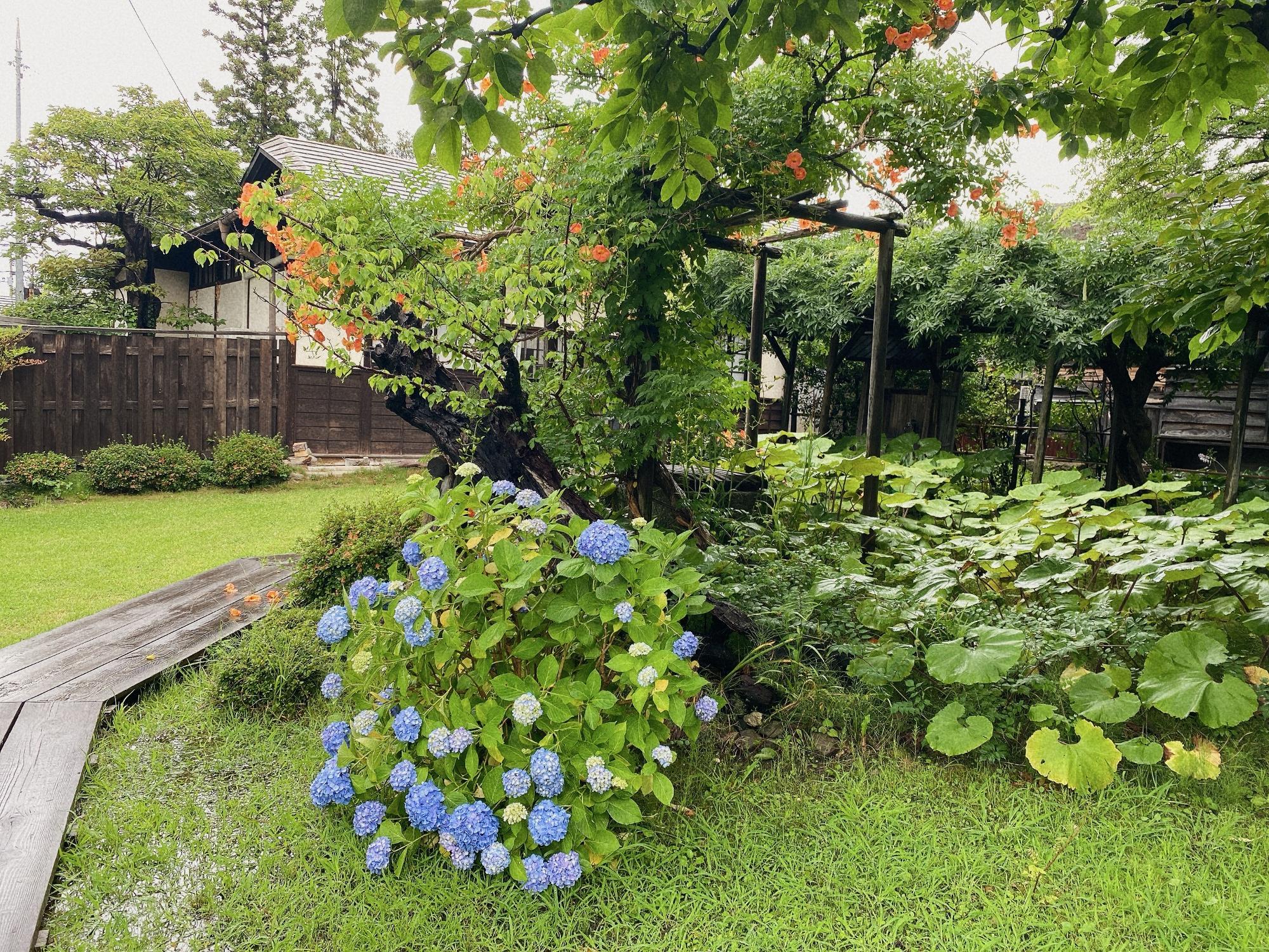 紫陽花は終わりかけ。ノウショウカズラは満開という感じ。