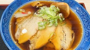 チャーシューが大きくて目をひきます。ネギの上の丸いのは「麩」です。西会津の特産でもあり、郷土料理の「こづゆ」にも豆麩が使われるので、馴染みのある食材ではありますが、最近のラーメン屋ではあまり見ません。