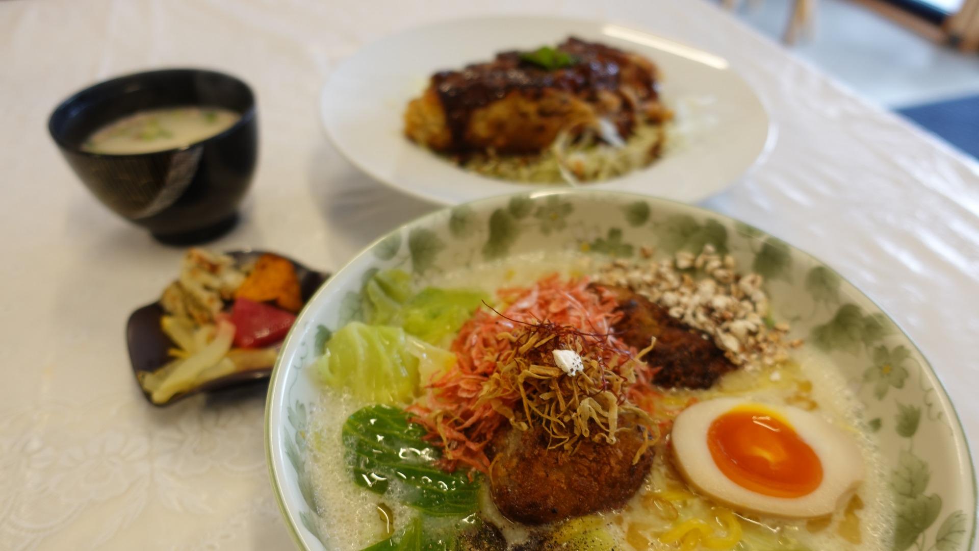 油で揚げていないカツレツ。味噌汁にはそばの実が入っていて、ワイアール麺同様、最初に確認されました。味噌汁はかなり白く、