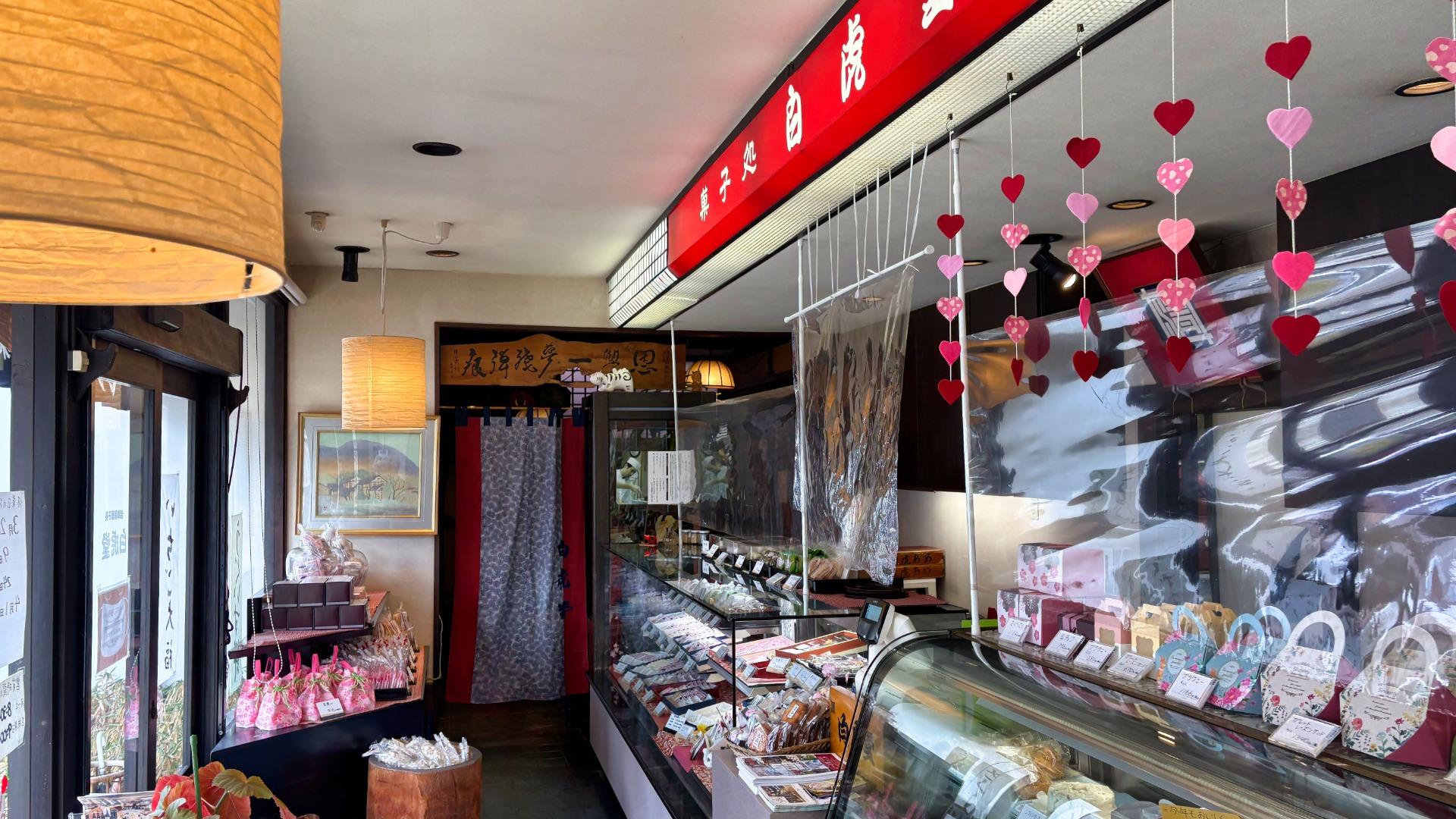 店に入って、正面左の棚。箱菓子とは、菓子折りの事(説明になっていない)。箱詰めされた菓子のことで、贈答用に使われます。