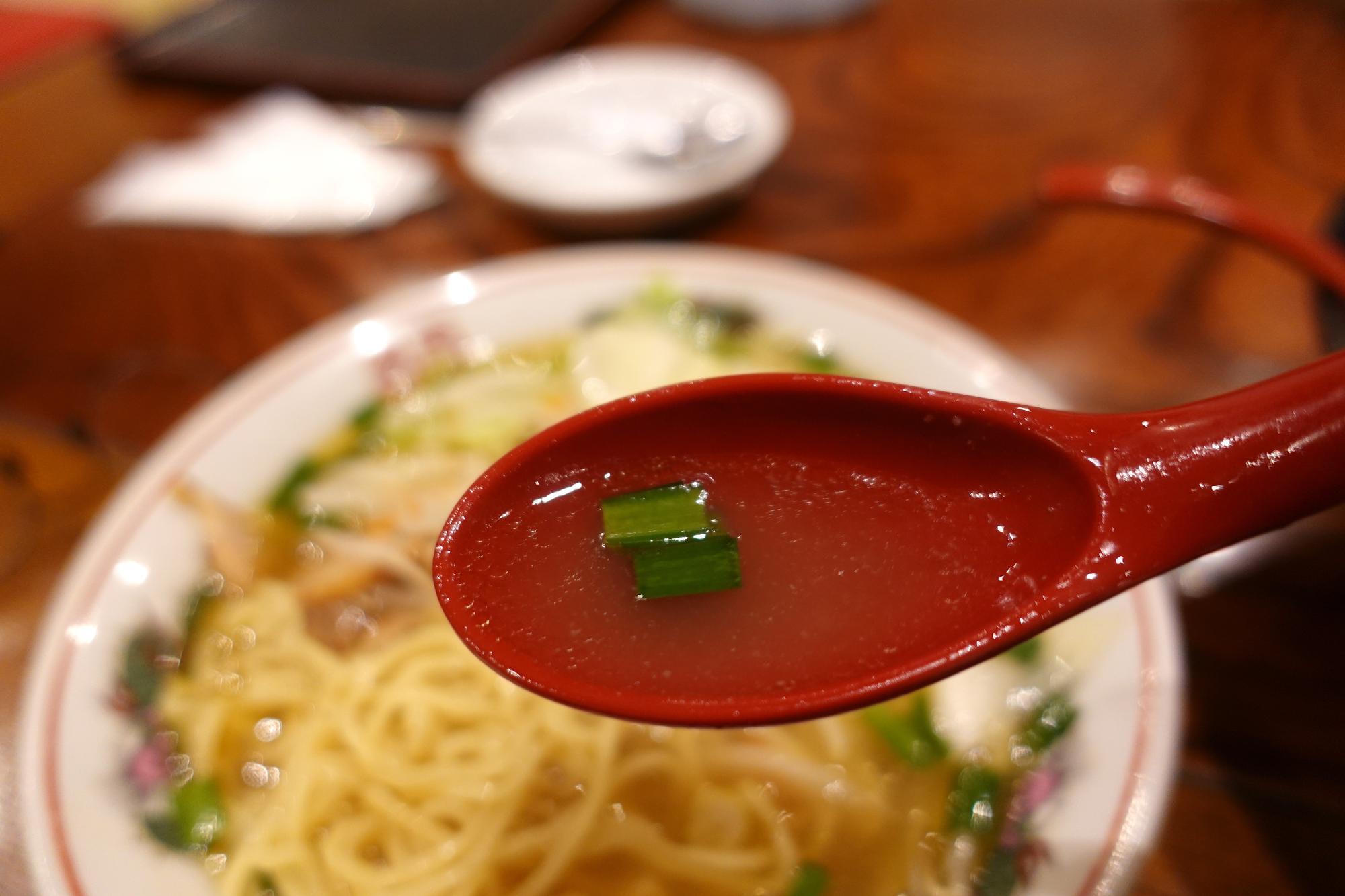 この写真だけでは分かりづらいのですが、器が大きい。たっぷりあんかけスープです。爽やかな酸味にキリッとピリ旨辛。