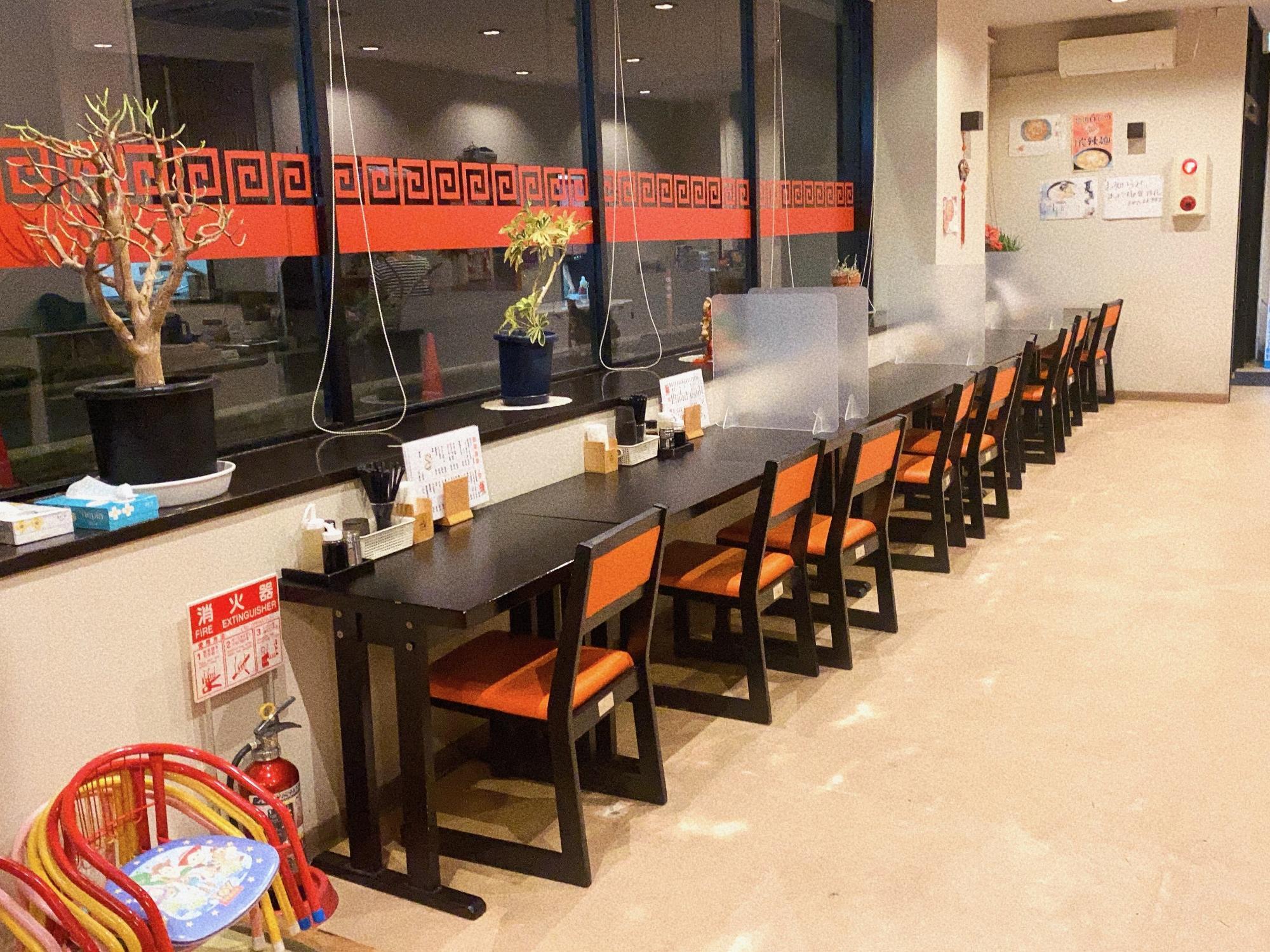 カウンター席。窓までの距離があるので、圧迫感はなく、ゆったり。