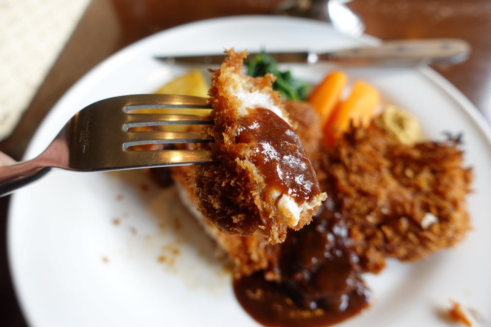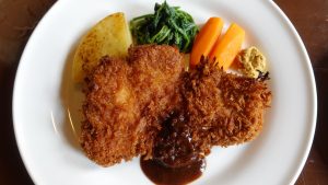 トンカツです。こんなにちゃんとした大きなトンカツを食べたのは久しぶり。付け合わせのニンジンも美味しいのだけど、ポテトをマッシュして纏めて焼いたのも美味しい。