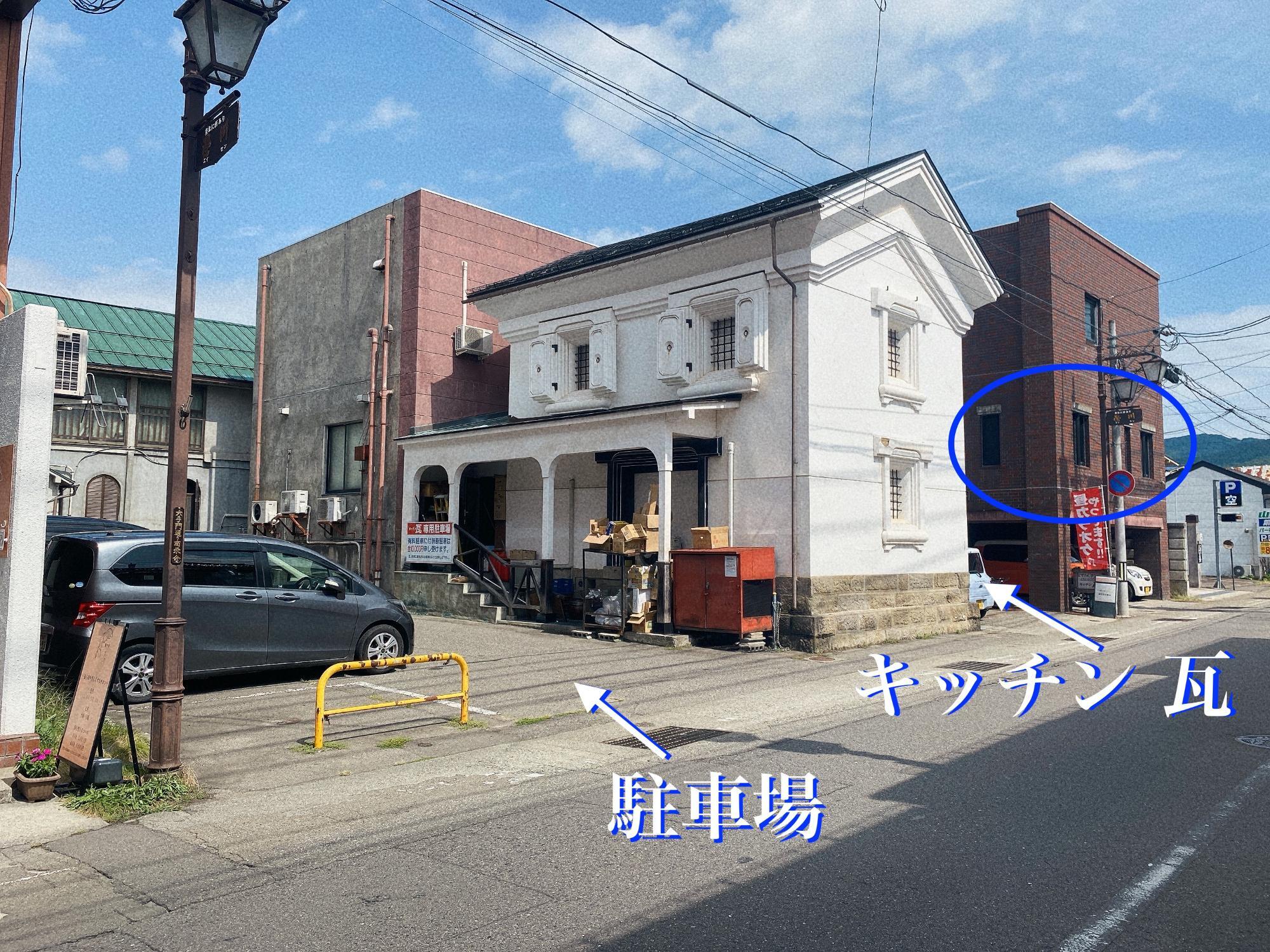 キッチン 瓦(かわら) 場所、駐車場