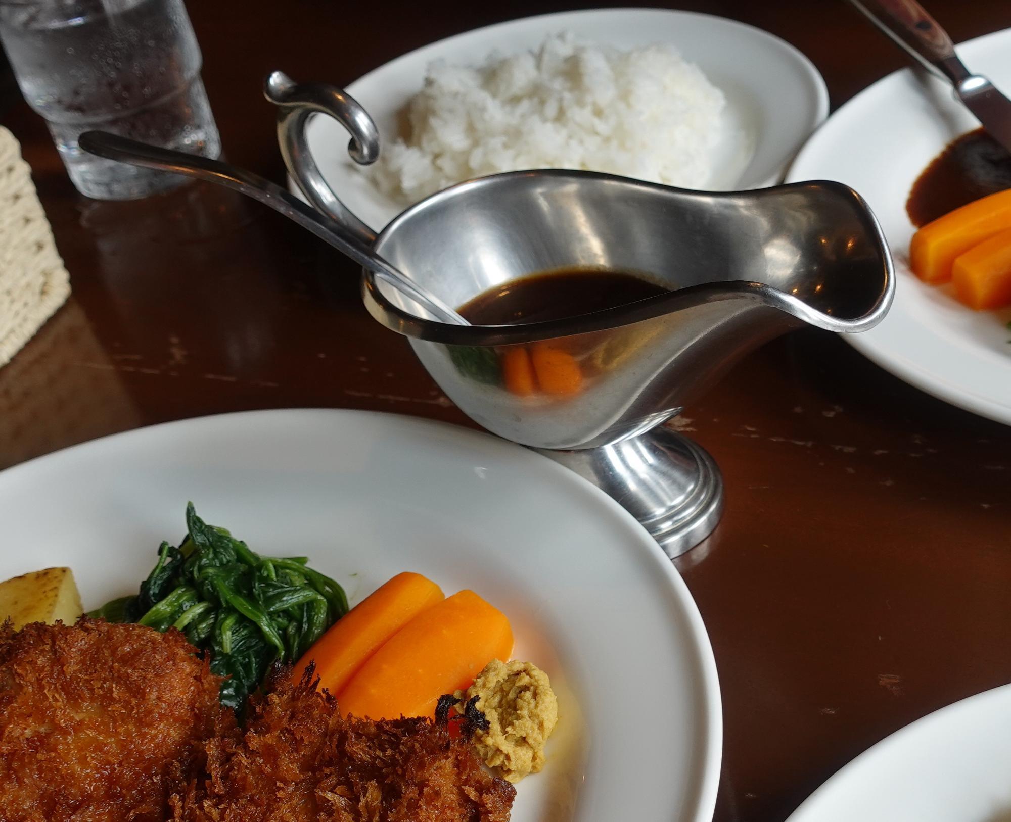 ニンジンの横の黄色いのはカラシです。トンカツソースは別について来ています。ハンバーグステーキのソースとは全く異なるティスト。