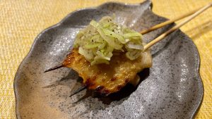 「つくね」には卵黄がついてきました。そのまま食べても美味しいですが、卵黄を溶き、くぐらせて食べると、タレの甘みとコク増しになります。