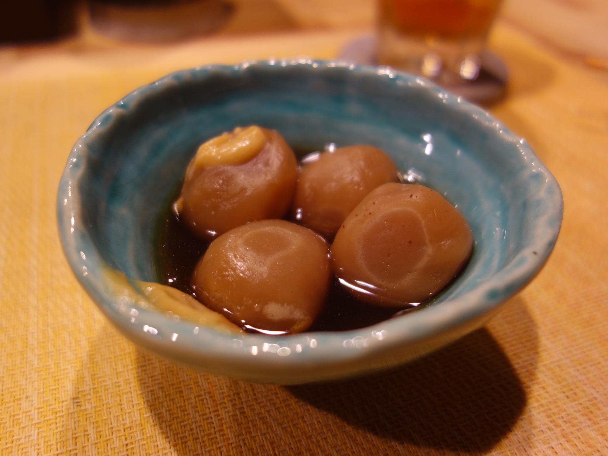 「萩のや」はカウンター席だけのこじんまりとした店。昨年は行こうとした日に席が空いていなくて、予約してコース料理で食べてきました。今年は事前に確認の上、早い時間に行ってアラカルトで食べてきました。